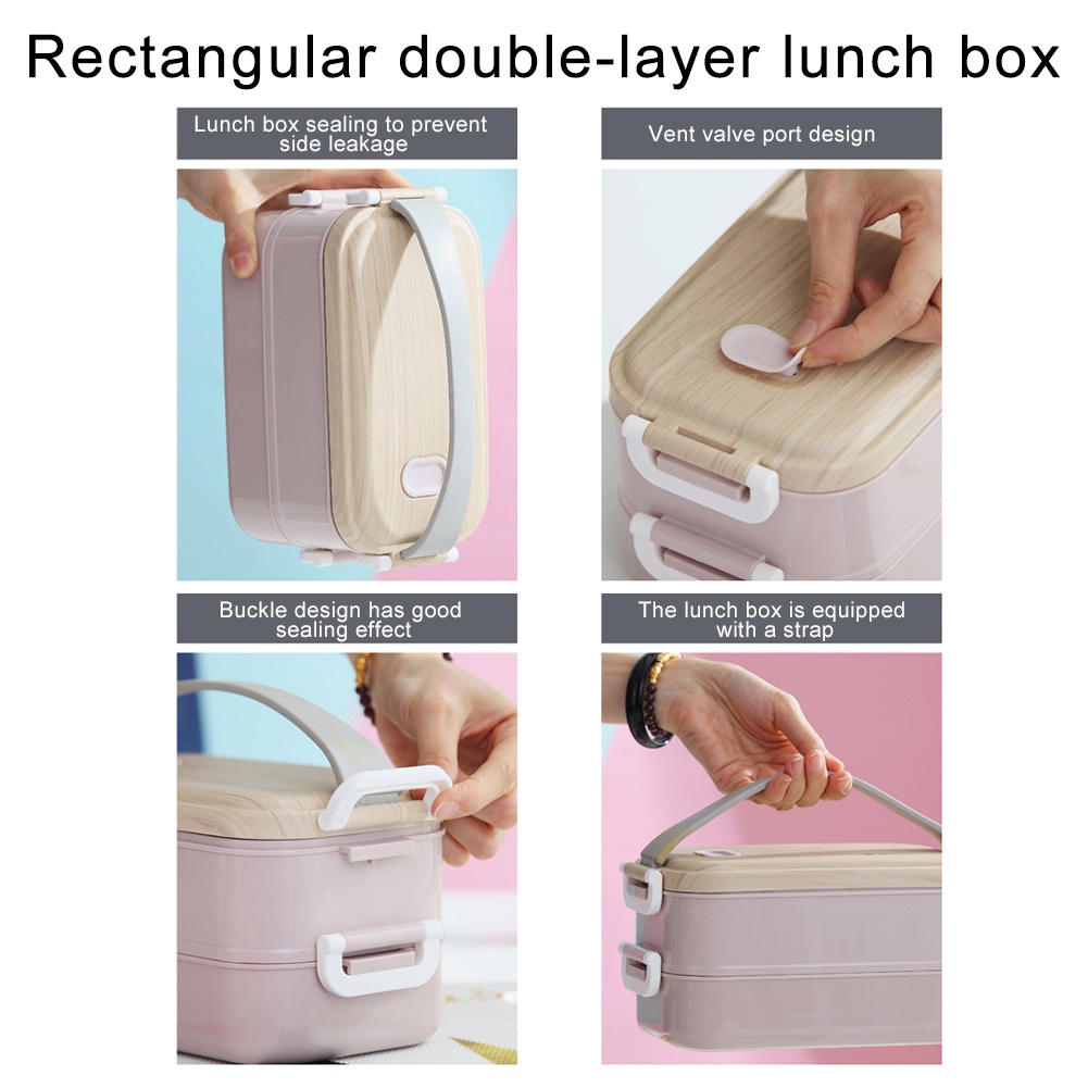 Detail Lunchbox stackable stainless steel 304 model kayu kotak bekal makan 2 susun Japan design