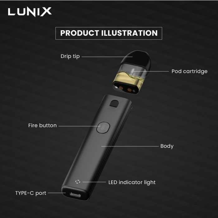 Lunix Mars Pod Kit Details: - Unique ergonomic design, smooth & comfortable grip - Exclusive PRO-FOCS technology, authentic flavor - One button system, direct draw or button draw - Perfect lip fitting design, made for MTL vapers - E-liquid check window, prevent coil burning - Adopts Meshed-H 0.9? Pod, coil non-replaceable - 2ml capacity, top filling & magnetic suction - Internal 520mAh battery, max 15W output