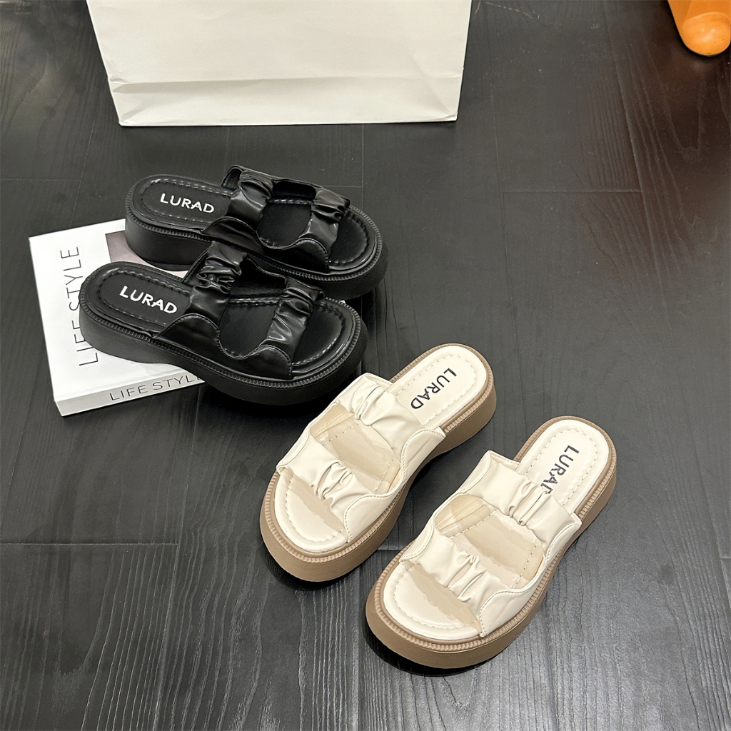 Detail LURAD Sandal Beige Sandal Wanita Sandal Cewek Wedges Sandal Hang out Model Trandy Sandal Fashionable Elegan Sandal Kece