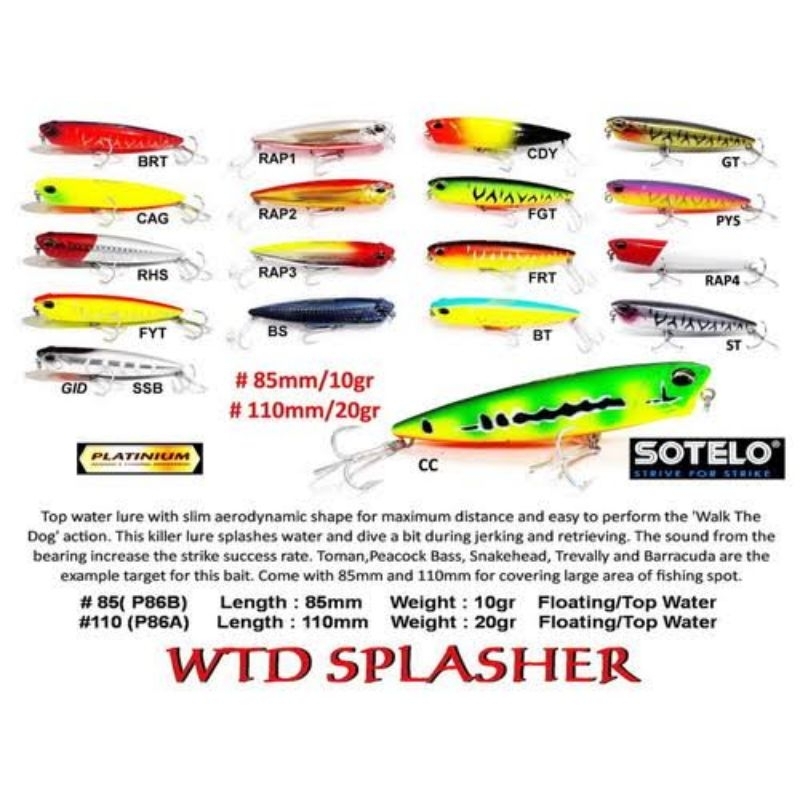 Lure SOTELO WTD SPLASHER 110 (11cm / 20gram) FLOATING = Rp.58.000.