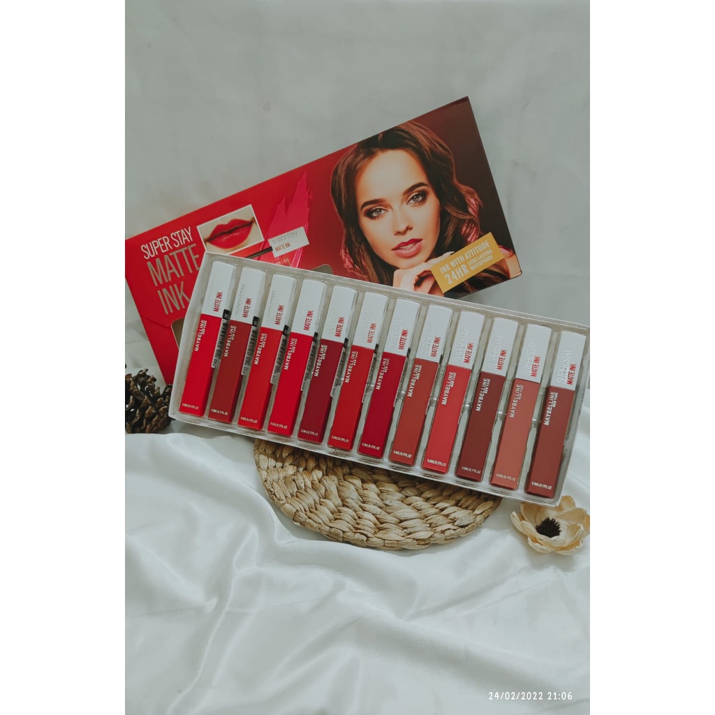 LIPCREAM MAYBELLINE BARCODE 12 COLLOR DENGAN KEMASAN BOX CANTIK PRAKTIS