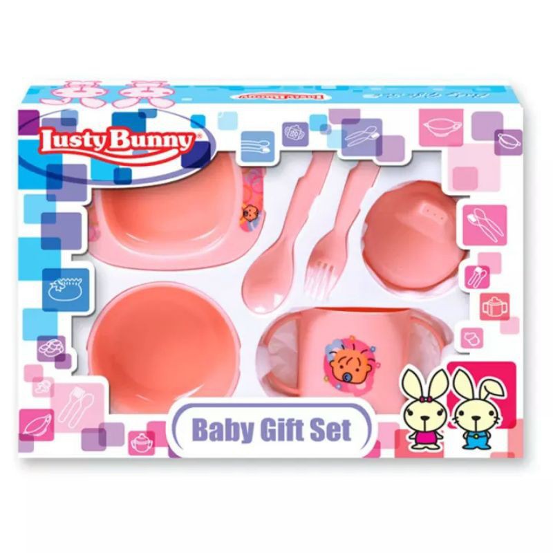 Lusty Bunny Feeding Set Gift / Peralatan Makan Bayi tersedia dalam bentuk packing dus.