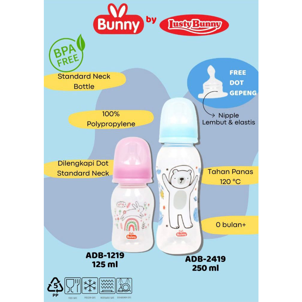 Ibu & Bayi > Perlengkapan Botol Susu > Botol Susu & Aksesoris > Lusty Bunny Botol Susu PP Reguler Dot Bulat Free Gepeng ADB 1219 ADB 2419 (125ml - 250ml) Terlaris