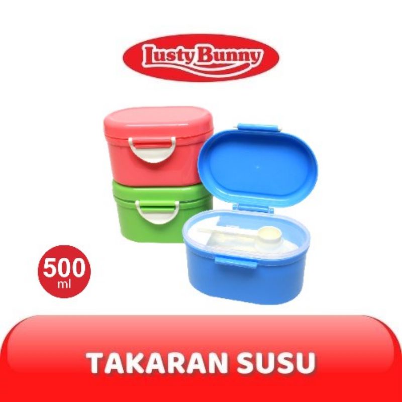 LustyBunny Milk Container & Snack Container Penyimpanan Susu Bubuk Tempat penyimpanan susu bayi dengan di lengkapi 1 buah sendok susu dan bisa dijadikan tempat kotak peyimpanan camilan. sangat cocok untuk penyimpanan apa saja dengan kotak penyimpanan yang begitu praktis. Fitur produk : - Terdapat sendok susu - Dilengkapi dengan pengunci agar tidak mudah tumpah - Terdapat sekat antara sendok dan tempat susu (menjaga kebersihan/lebih higienis) - Terdapat pengikis susu (untuk takaran pengukuran susu lebih akurat) - Anti pecah - BPA Free - Bahan : Polypropylene - Ukuran : 500 ml - Warna : Biru, Pink, Hijau
