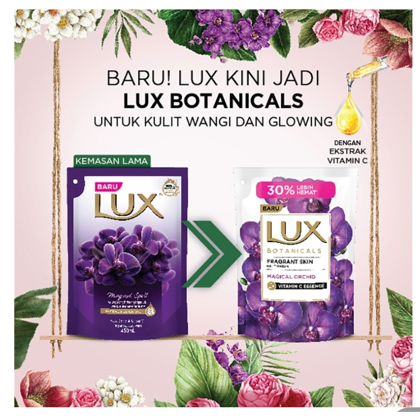 � Lux Botanicals SABUN MANDI CAIR REFILL Soft Rose � BODY WASH Untuk kulit harum dan halus � Sabun mandi refill dengan keharuman alami bunga French Rose � Sabun pelembut dilengkapi dengan Vitamin C Essence dan Floral Beauty Oil � Sabun kecantikan yang memberikan perawatan pelembap kulit kamu � Sabun mouisturizer untuk perempuan yang menginginkan kulit harum dan lembut