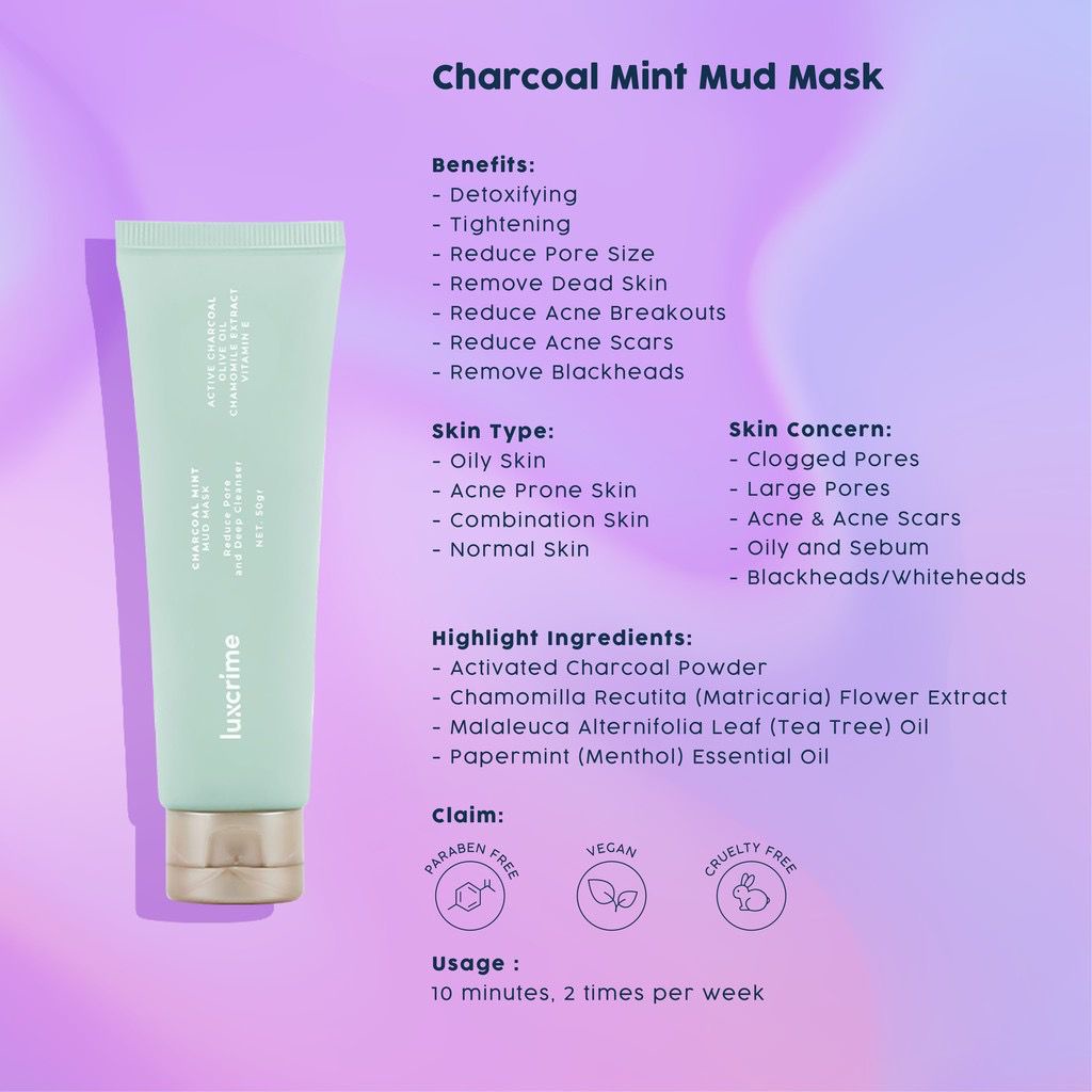 Luxcrime Charcoal Mint Mud Mask 70G ( EXP 2023/12)