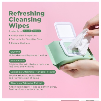 Description: A packette of ready-to-go cleansing wipes that gently and effectively remove makeup without drying out the skin or the need for water. They easily wipe away dirt, oil, and other impurities from the eyes and face, refreshing and nourishing the skin with Niacinamide and Marigold Flower. The resealable package makes them perfect for on-the-go use.