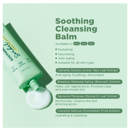 Description: This sorbet-like cleansing balm use Green Tea Extract to soothe the skin while dissolving makeup, sunscreen, dirt, and oil, creating a baby-soft canvas for your next skincare. Its nongreasy, non-drying, lightweight formula, cleanses thoroughly, and rinses off completely. It is also formulated with vitamin A-rich Broccoli Extract, soothing Cucumber Extract, and moisturizing Spinach Leaf Extract to leave skin looking clean, bouncy, and glowing.