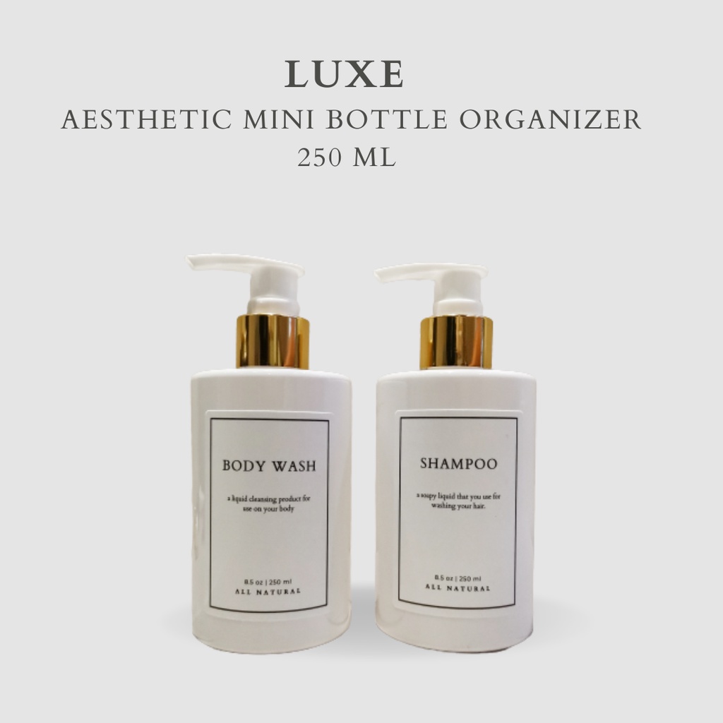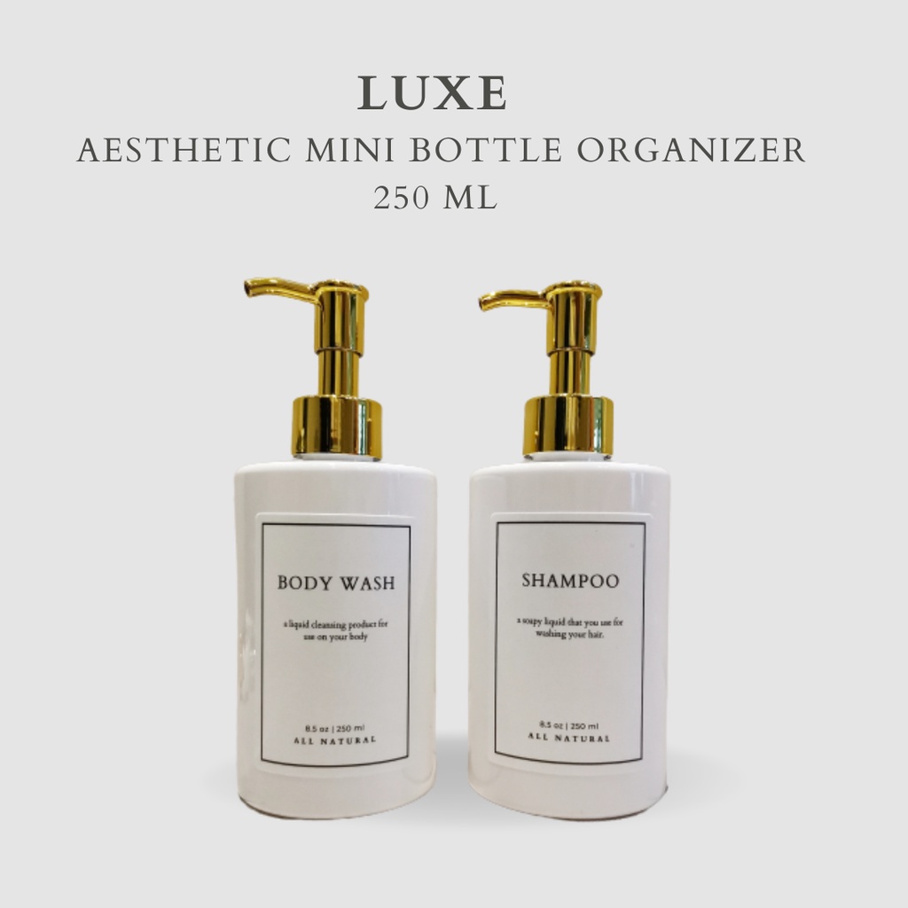 LUXE Botol MINI PUTIH Label KOTAK PUTIH 250 ml Aesthetic Bottle Refill | Botol refill sabun /botol refill sabun/ botol isi ulang/botol sabun refill/botol sabun/botol pump/botol anak/bathroom organizer/bathroom amenities