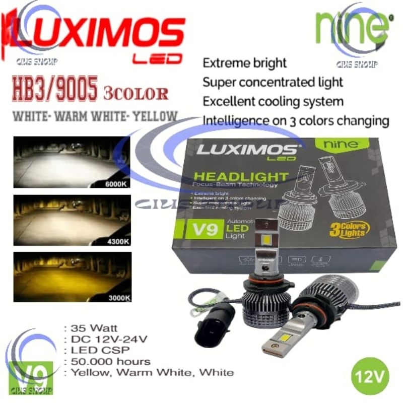 - H4 3 WARNA V9 LUXIMOS NINE - H11 3 WARNA V9 LUXIMOS NINE - H7 3 WARNA V9 LUXIMOS NINE - HB3 (9005) 3 WARNA V9 LUXIMOS NINE - HB4 (9006) 3 WARNA V9 LUXIMOS NINE