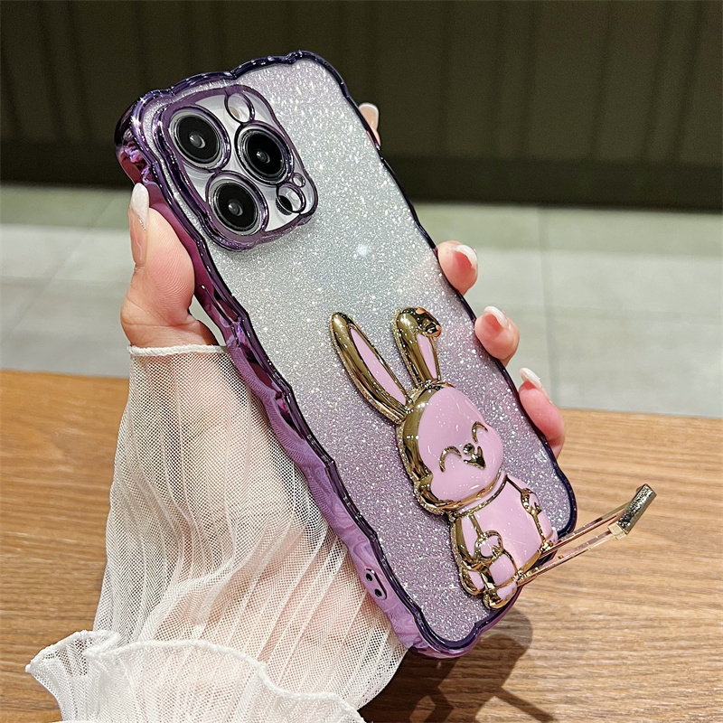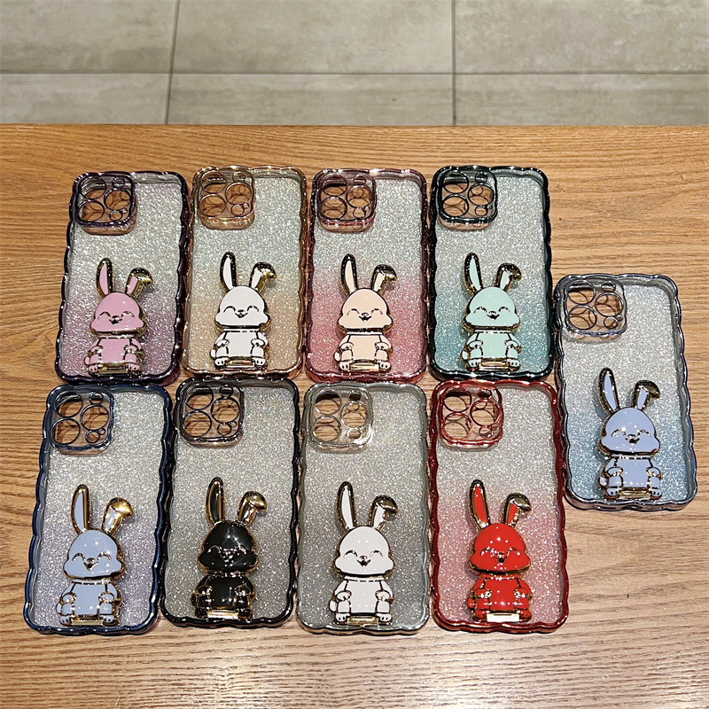 Handphone & Aksesoris > Casing & Skin > Casing & Skin Handphone > Luxury 3D Rabbit Stand shine Case Iphone 13 Pro Max Case13 12 11 Pro XR XS Max Premium Sepenuhnya Tertutup Shockproof TPU Protection Soft Case