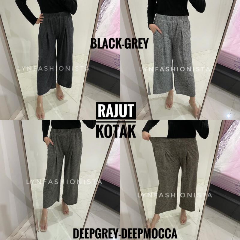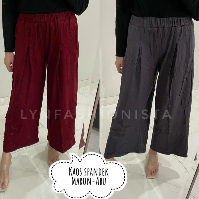 KULOT KAOS SPANDEK FREE SIZE MUAT BADAN STANDAR sampai JUMBO (MAX BB 100 KG) MATERIAL :KAOS SPANDEK Panjang: 87 cm Lebar Paha: 70 cm LP: 60 cm bisa melar sampai 126 cm (tarik maximal) . Warna: Hitam, Marun, Krem, Cokelat Tua, Navy,Abu . . . KULOT RAJUT KOTAK (MAX BB 80 KG) FREE SIZE MUAT BADAN STANDAR SAMPAI JUMBO (MAX 80KG) Panjang: 92 cm Lingkar Pinggang: 64 cm - 120 cm (tarik maksimal) Lebar Paha: 68 cm
