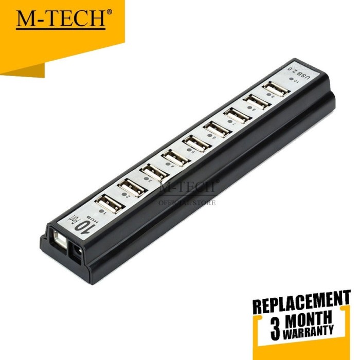 Spesifikasi Produk : Jenis : USB HUB Port : 10 Lubang Brand : M-Tech USB : USB Versi 2.0 Adaptor : 2A adapter warna Hitam dan Putih Supports up to 480 Mbps data transfer rate Supports system: Windows 2000/XP/Vista/7,8,10