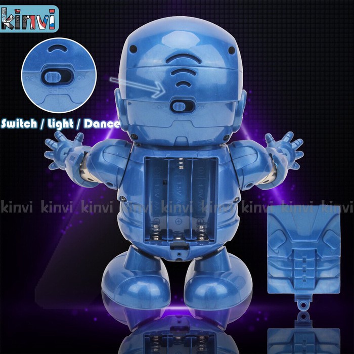 Features: - Meningkatkan keceriaan anak - Ada Lagu2 / Music Dance nya yg cocok buat anak - Di bagian mata dan tangan ada lampu led nya ( super cool ) - Kaki nya bisa gerak motion kiri kanan, dan badan robot nya bisa naik turun - tinggi Robot 20cm - Menggunakan batre AA 3 buah (tidak termasuk)