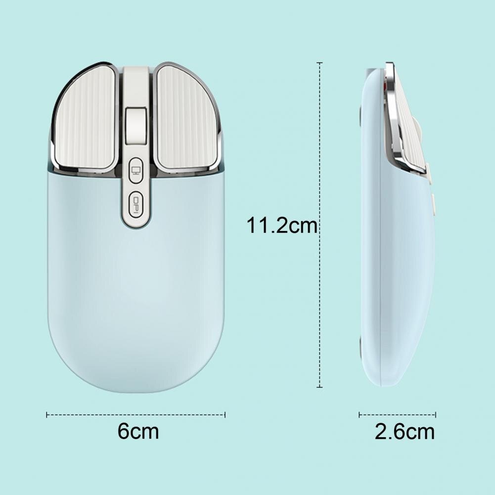 Specification Product Name: Dual-mode 2.4G Wireless Bluetooth Mouse Product Model: M203 Product Type: Optical Mouse Connectivity: Dual-mode support Bluetooth 5.1 + 2.4G wireless via dongle DPI Resolution: 1200/1600/2400 Physical Switch: Yes(2.4G/Off/BT & pair) LED Indicator: Yes Battery: 500mAh Rechargeable Charging Time: 2 hours Working Time: Up to 60 days Operating Distance: 10 meters