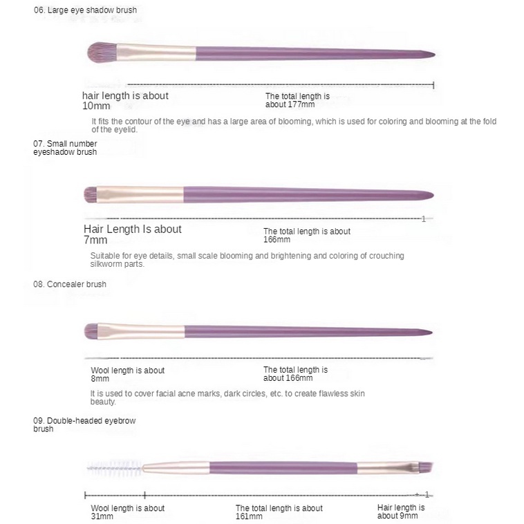Fitur: 1. Setelah Mengaplikasikan Alas Bedak, Bersihkan Dengan Lembut Menggunakan Kuas Alas Bedak, Gunakan Kuas Bedak Tabur Untuk Mengambil Kue Bedak Dan Tekankan Bedak Pada Pipi, Gunakan Kuas Perona Pipi Untuk Mengaplikasikan Perona Pipi Dan Sapukan Perona Pipi, Atau Itu Juga Dapat Digunakan Sebagai Kuas Stabilo. 2. Gunakan Kuas Eye Shadow Untuk Mencelupkan Ke Tulang Pipi Samping, Dan Gunakan Kuas Eye Shadow Miring Sebagai Kuas Eyeshadow Di Batang Hidung. 3. Gunakan Kuas Eyeshadow Kecil Untuk Mengaplikasikan Eyeshadow Pada Kelopak Mata, Dan Gunakan Kuas Eyeliner Atau Kuas Concealer Untuk Mengaplikasikan Eyeliner Pada Eyeliner. Gunakan Sikat Alis Untuk Mengambil Bedak Alis Untuk Menguraikan Bentuk Alis, Lalu Gunakan Sisir Alis Untuk Menyisir Bedak Alis Hingga Bersih. 4. Ini Adalah Hadiah Terbaik Untuk Wanita, Teman Atau Keluarga, Dapat Digunakan Dalam Pernikahan, Jamuan Makan Dan Pesta, Ini Adalah Teman Terbaik Anda.