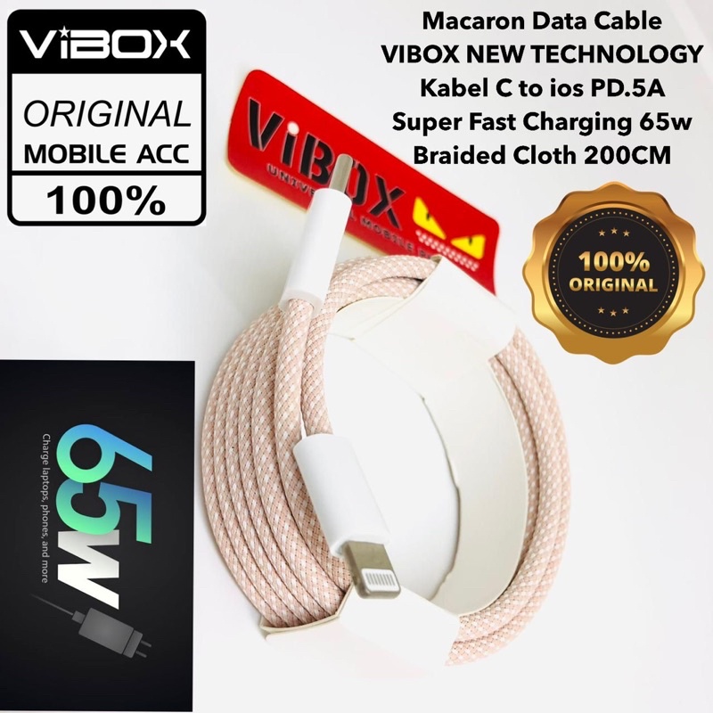 Macaron Data Cable Vibox Kabel C to ios PD.5A Super Fast Charging 65w Braided Cloth 200CM Promo Sen