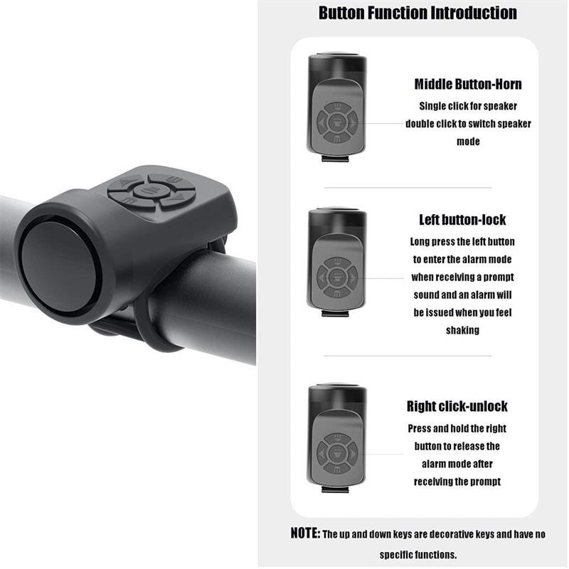 Mode Alarm Selain berfungsi sebagai klakson sepeda, alat ini juga berfungsi sebagai alarm yang akan berbunyi keras hingga 300 dB jika sepeda Anda bergerak saat sedang parkir. Cegah kemalingan sepeda dengan menggunakan alarm sepeda ini.