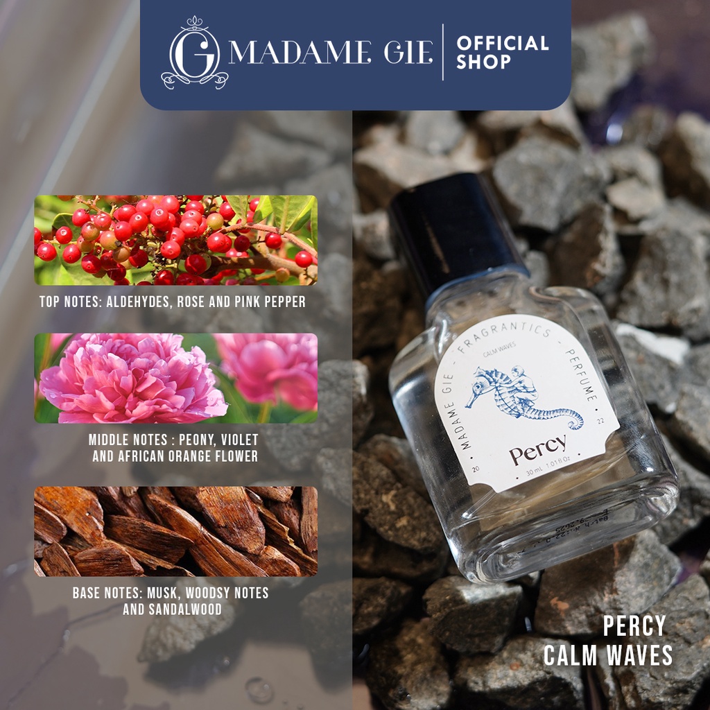 Hi! MG'ers Madame Gie punya produk baru nih, Madame Eau de Parfume! Madame Gie Madame Eau de Parfume punya 4 varian parfum loh, terdiri dari: 1. Althea : feminine and modern, sexy but innocent. truly opulence in a bottle. the notes evoke feelings of passion, love and trust. Althea is combining sultry notes of cassis nectar, chypre and light musky wood that would give depth and mystery. also vanilla that sweet but in a mature way. The distinguished and elegant fragrance allows women to express their every emotion. 2. Juliette An explosive bouquet of fresh and sweet in a bottle. Top notes tingle with fresh and sweet accords of bergamot and green tea. A heart is floral and opulent with intensive, sweet and pure Sambac jasmine, seductive Centifolia rose, freesia and Cattleya orchid. Musk and patchouli in a base wrap us with an oriental scent, while its milky and powdery notes gently fondle our skin. 3. Percy The smell when the door opened, humid air with the scent of freshly laundered laundry hit you. or the smell of a warm nutty body lotion slipped into the freshly made bed. The perfume opens with white roses, pink pepper and aldehydes. A heart includes violet, neroli and peony. A base is enriched with blond wood, sandalwood and musk. 4. Guinevere a scent of a strong, bold and free woman experimenting her freedom extremely. The explosion between the burning sensuality of an orange blossom from Morocco & the boldness of a lavender from France with a feminine twist. A singular trail like a breath of freedom. a spray that will make you feel like you can take over the world No.BPOM: 1. Althea : NA18220601824 2. Juliette : NA18220601827 3. Percy : NA18220601826 4. Guinevere : NA18220601825