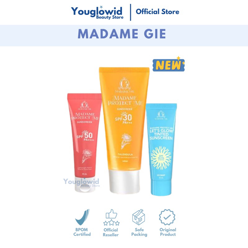 Video perkenalan produk MADAME GIE Protect Me Sunscreen SPF 30 PA+++ With Calendula Extract Lets Glow Tint Hybrid Sunscreen SPF 50 PA+++ Anti UVA UVB. Sumber: Shopee.