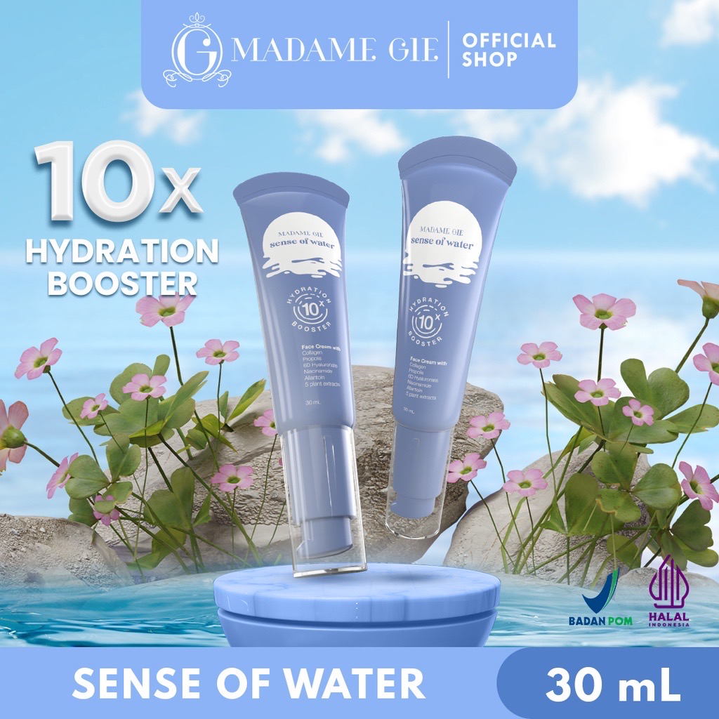 MADAME GIE Sense Of Water Indonesia / Face Cream 30ml / Moisturizer 10X Hydration Booster / Collagen Propolis 6D Hyaluronate Niacinamide Allantoin 5 Plant Extracts / Moisturizing Hydrating Melembabkan Pelembab Krim Kulit Wajah / Skincare Face Care Series