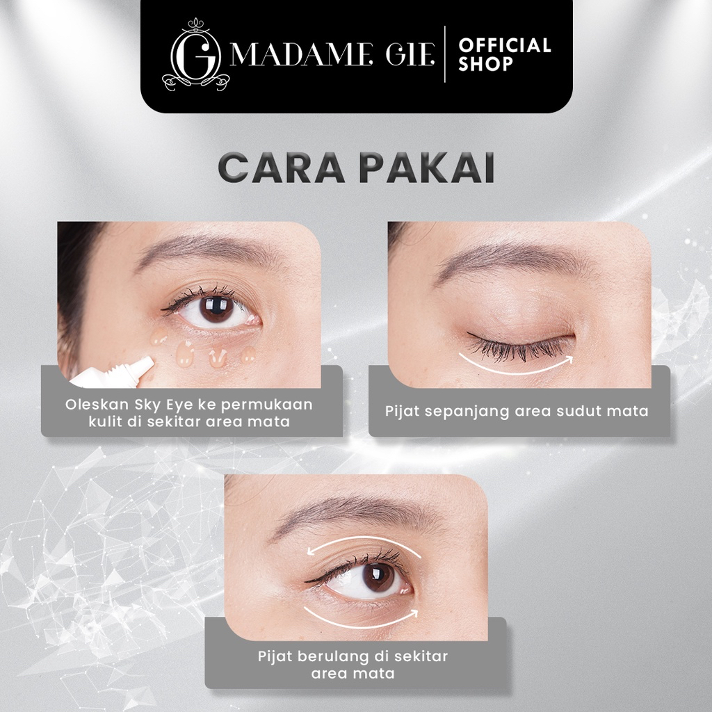 Video perkenalan produk MADAME GIE Sky Eye Under Eye Cream Indonesia / Krim Mata 15ml / Mencerahkan Mencegah Garis Halus / Brightening Dark Circle Moisturize Eyes / Kerutan Panda Kantung Gelap Anti Aging Penuaan Dini Skincare Care Treatment Perawatan Kulit / Serum Mask Gel Pads. Sumber: Shopee.