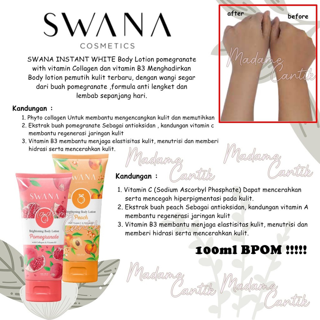 SWANA INSTANT WHITE Body Lotion pomegranate with vitamin Collagen dan vitamin B3 Menghadirkan Body lotion pemutih kulit terbaru, dengan wangi segar dari buah pomegranate ,formula anti lengket dan lembab sepanjang hari.