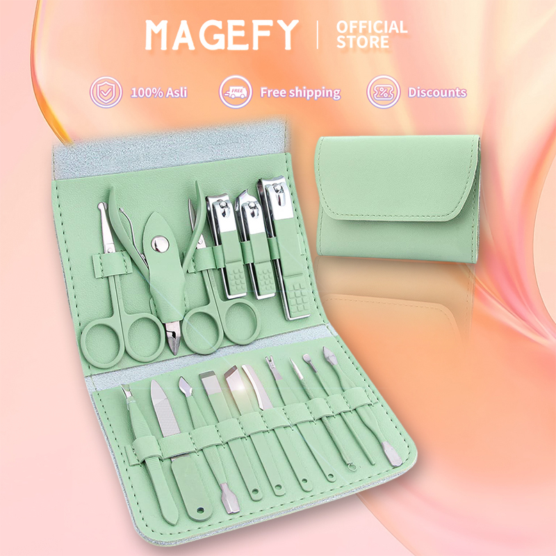 MAGEFY Gunting Kuku Set 16 in 1 Manicure Set Stainless Steel Gunting Kuku Alat Manicure Alat 1421