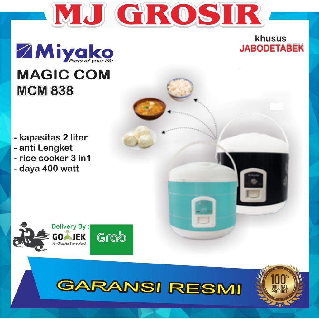 Magic Warmer Plus Miyako MCM-838 Merupakan penanak nasi dengan fungsi 3 in 1 yaitu sebagai pemasak nasi, mengukus dan menghangatkan masakan. Pada bagian inner pot magic warmer plus ini menggunakan material berkualitas sehingga anti lengket, tidak mudah tergores dan mudah untuk dibersihkan. Memiliki 3 element pemanas dibagian atas, tengah dan bawah yang menjadikan nasi matang lebih sempurna dan tahan hangat lebih lama.