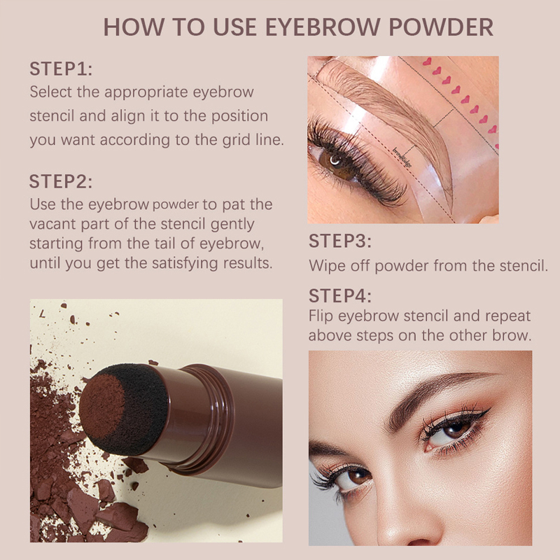 Cukup tempel Cetakan pada alis anda, ratakan warna dengan Stamp, dan SELESAI ! Hasil alis terlihat profesional dan anda siap untuk berpergian !