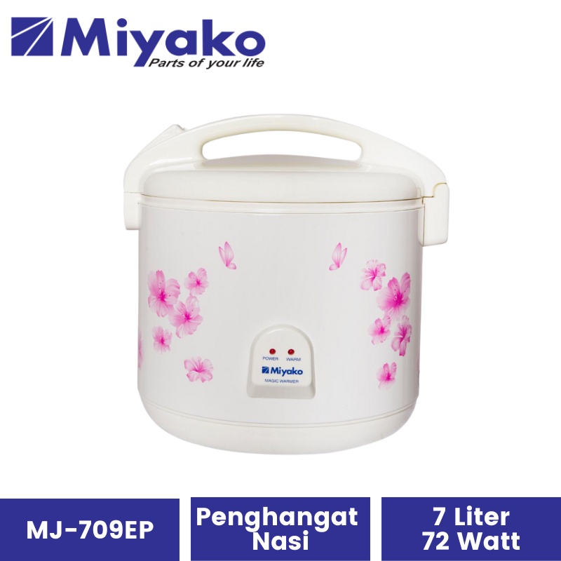 Miyako MJ-709EP Magic Warmer (Penghangat Nasi), watt kecil (72 Watt) dengan kapasitas besar (7 Liter) sangat berguna bagi Anda sekeluarga. Memiliki desain yang modern dan minimalis membuat Magic jar ini unggul diantara semua magic jar. Dengan lapisan panci yang terbuat dari bahan Non PFOA membuatnya lebih aman digunakan karena tidak akan terjadi reaksi kimia yang dapat membahayakan tubuh. Kapasitasnya yang besar membuat Anda dan keluarga besar menjadi lebih nikmat menyantap hidangan bersama-sama. Sangat cocok digunakan di rumah, kantin, restaurant, piknik, dan berbagai acara.