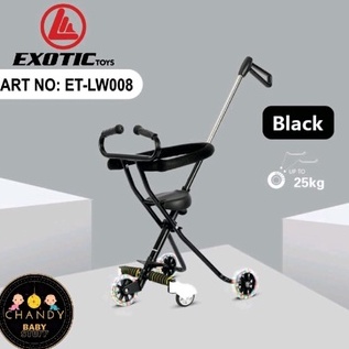 Mudah Dibuka dan Dilipat Ringkas dan Portabel, Mudah Disimpan dan Dibawa Dilengkapi 5 roda lebih stabil dibanding 3 roda 3 PU wheel, roda nyala jika berputar cepat sepeti roda skuter (dengan magnet) Roda depan dapat berputar 360 derajat Safety bar, pengaman dilapis busa Tongkat dorong