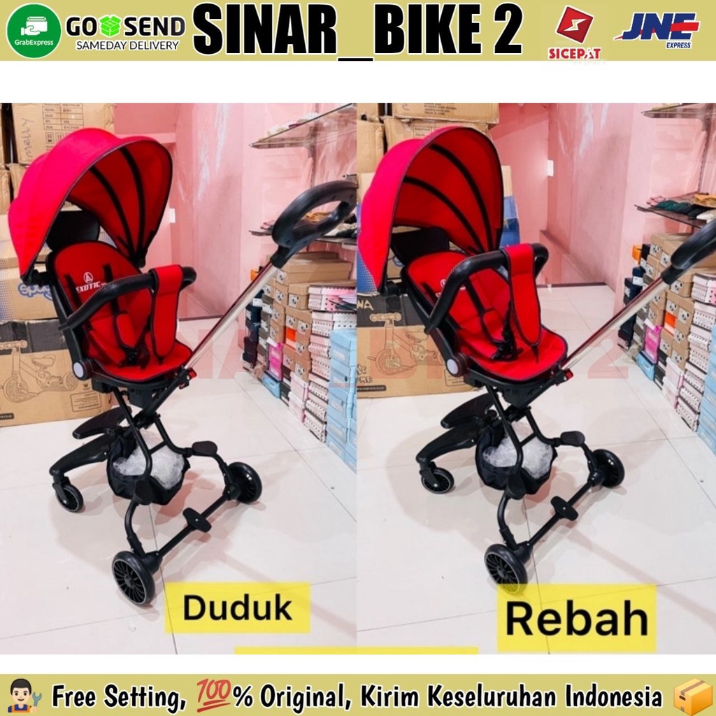 Merk : EXOTIC Tipe : ET LW 126 Spesifikasi : - Rangka kuat dan kokoh, menampung beban maksimal hingga 25kg - Ada kanopi - Ada sabuk pengaman - Ada lingkaran pengaman - Roda besar & kuat - Non slip footrest - Ada keranjang - Dapat dilipat, ringan, dan praktis