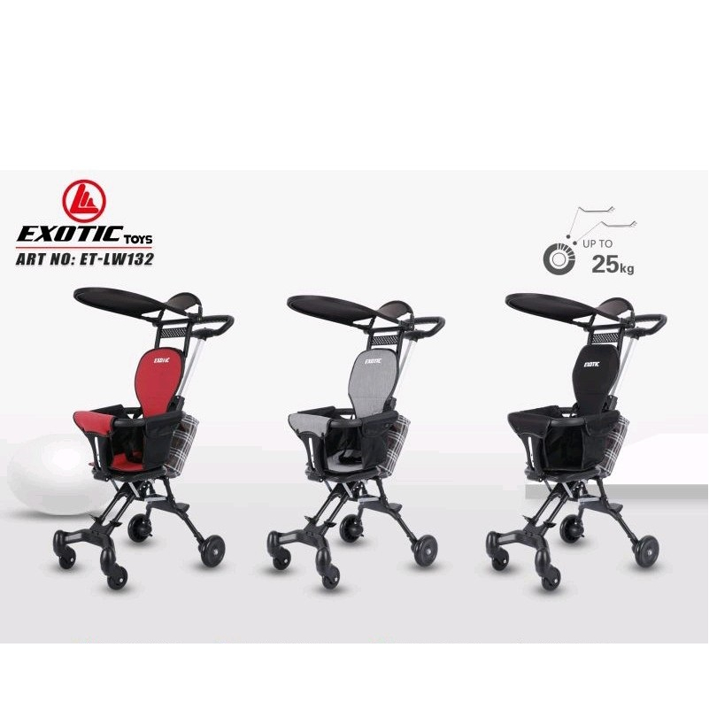 STROLLER LIPAT ANAK MERK EXOTIC BY PACIFIC TYPE ET LW 132 Sandaran Punggung dan Kepala yang Nyaman dan Empuk Orientasi Hadap Depan atau Orang Tua (2 ARAH) Beban Maksimum 30kg Kursi Sofa Style dan Dilengkapi Pengaman Depan dengan Cross Belt Sabuk Pengaman Roda Belakang dengan Rem Pengaman Free Travel Bag