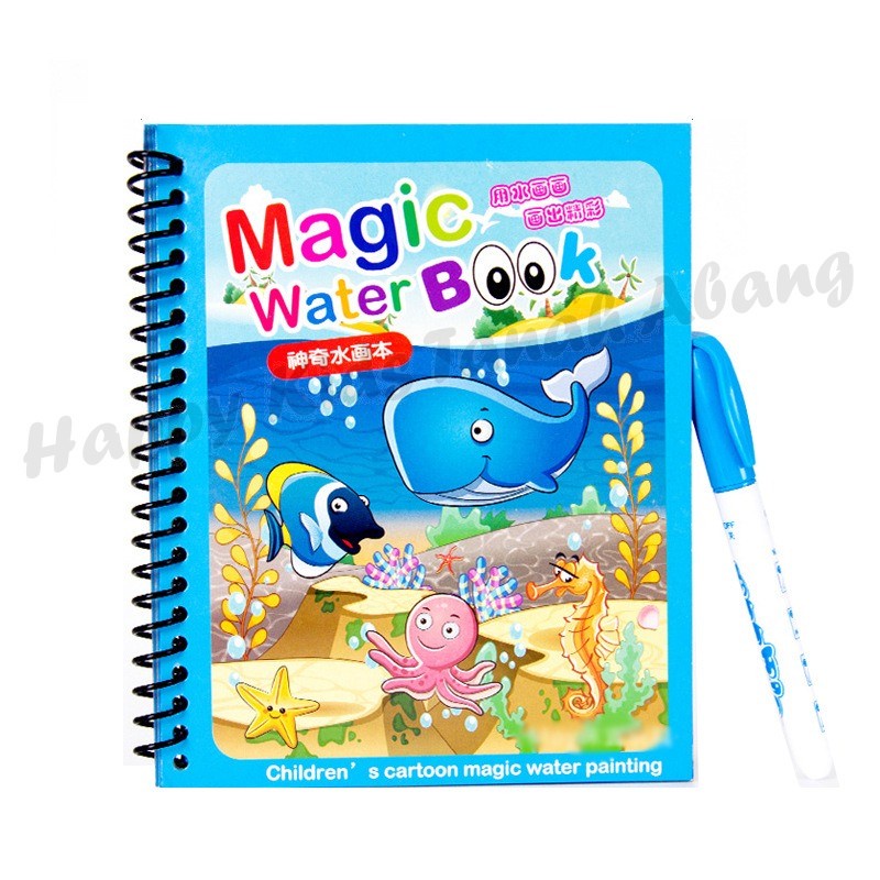 Magic water book adalah buku mewarnai yang manggunakan air saja, sehingga tidak membuat rumah kotor, setelah air nya kering warna nya akan hilang dan bisa di gunakan kembali.
