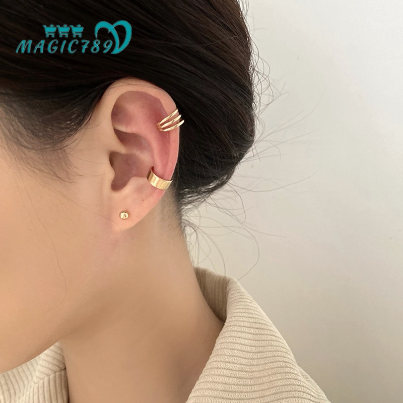 Detail Magic789 3 Pcs Sederhana Emas Kecil Manik Berongga Garis Klip Anting-Anting Untuk Wanita Perempuan Vintage Bentuk C Cuff Earrings Set Fashion Hiasan Telinga Pakaian Sehari-Hari