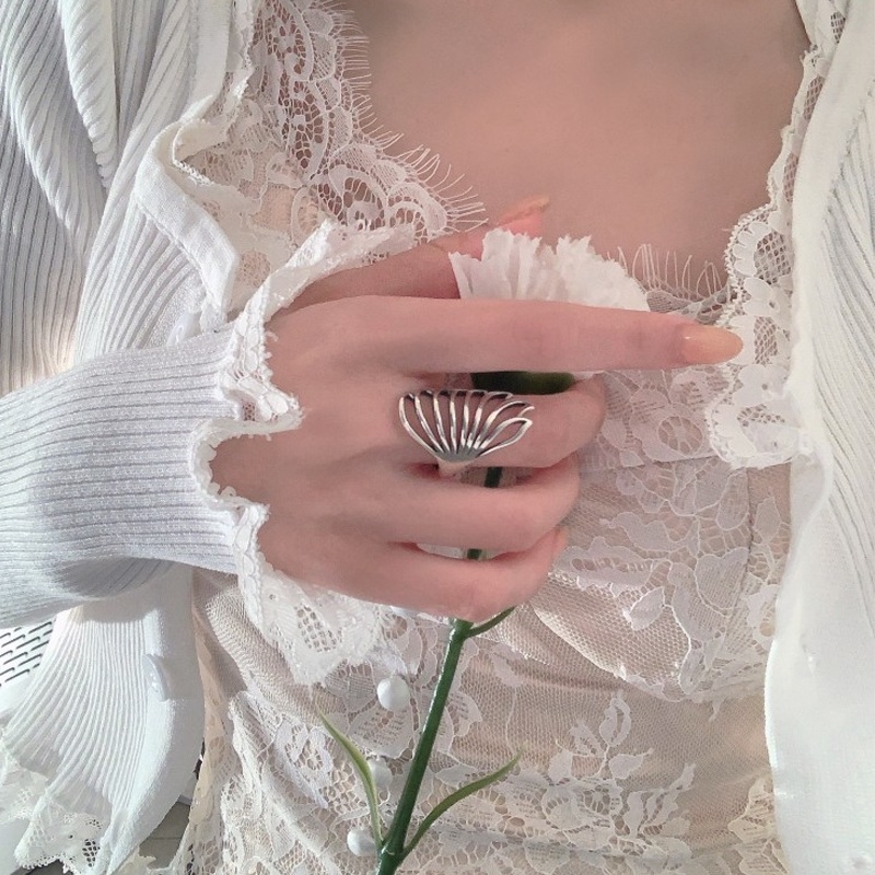 Aksesoris Fashion > Cincin > Magic789 Retro Perak Berongga Kupu-Kupu Bulu Terbuka Cincin Untuk Wanita Pria Keren Sayap Buku Jari Cincin Kepribadian Aksesoris