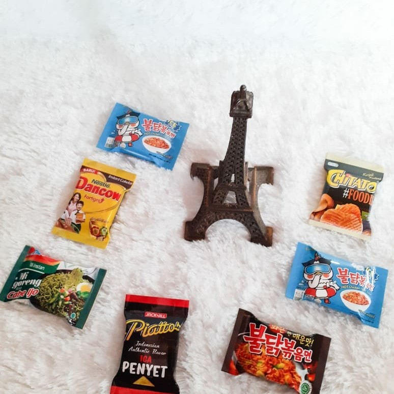 Ready : MAGNET KULKAS UNIK Miniatur Mie / Makanan Ringan