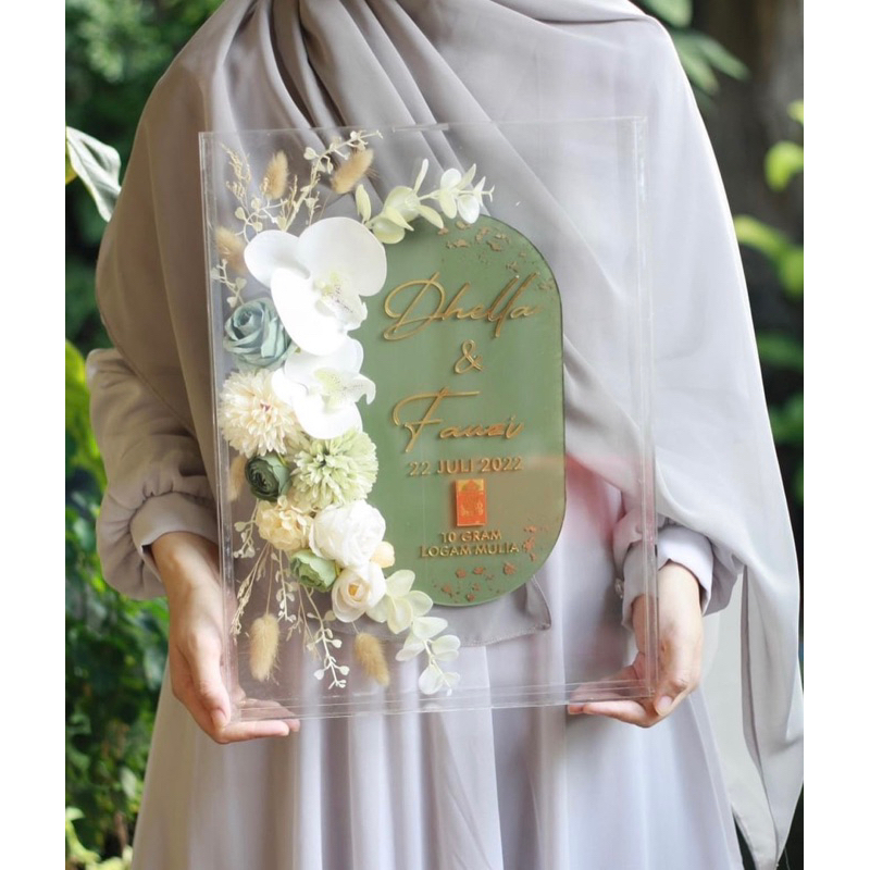 Request : 1. Lengkapi judul dan kata kutipan 2. Background warna Hijau 3. Tulisan warna Gold 4. Bunga nuansa putih 5. Pakai aksesoris hiasan uwang mainan dan replika logam mulia 6. kaka bisa request lainnya tulis saja yang lengkap ya kak 😊 supaya requestnya bisa kami sesuaikan dg keinginan kaka