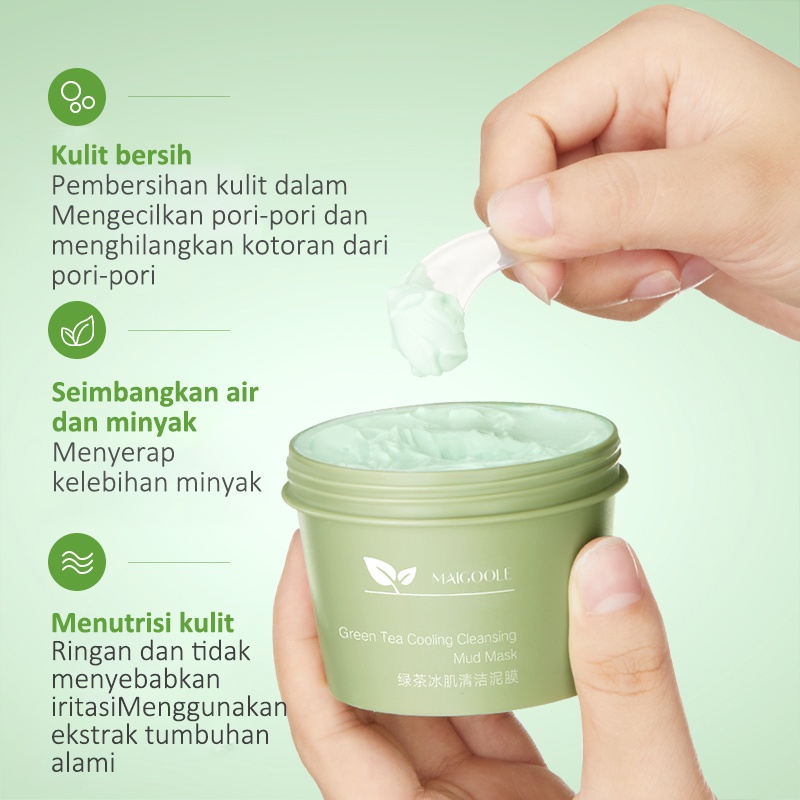 Detail Maigoole Mudmask Green Tea Clay Mask Masker Wajah Green Tea Pore Clean Clay Mask - 100gr