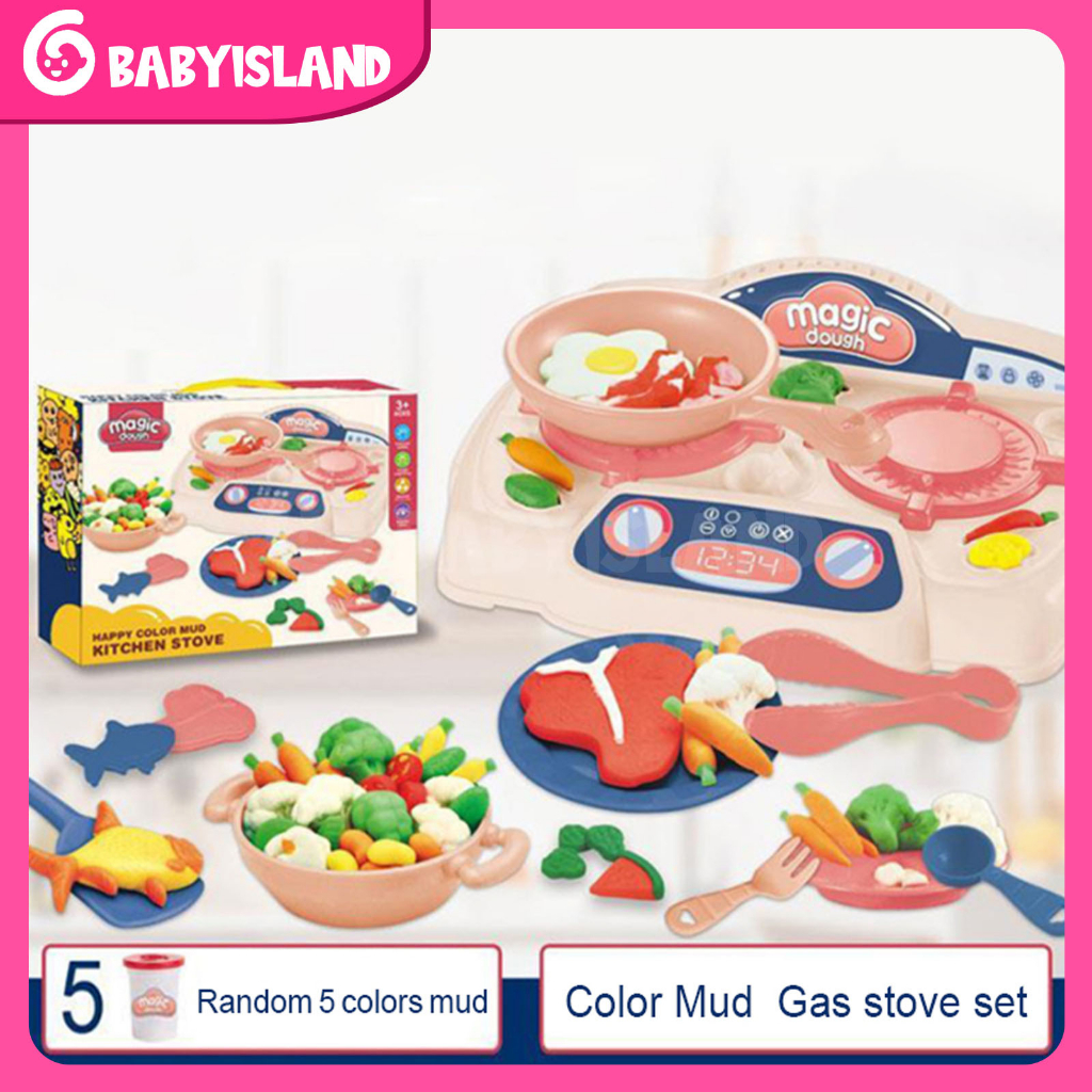 Lumpur warna yang menyenangkan --- Kompor Gas Dapur Kompor Gas + 2 pcs pot Acak 5 warna lumpur Ukuran Paket: 31*4*24 13 pcs alat memasak Cocok untuk: di atas 3 tahun +