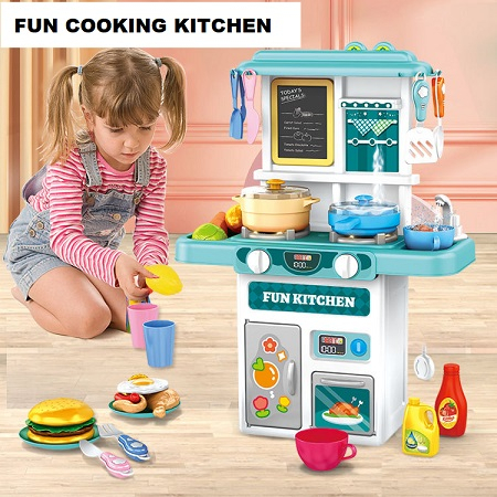 Kitchen Cooking NEW Ukuran Box : 31x10x42cm Ada Suara dan Uap Menggunakan baterai AA 3pcs ( Belum termasuk ) Terdapat 50pcs acesoris sudah bersertifikat SNI
