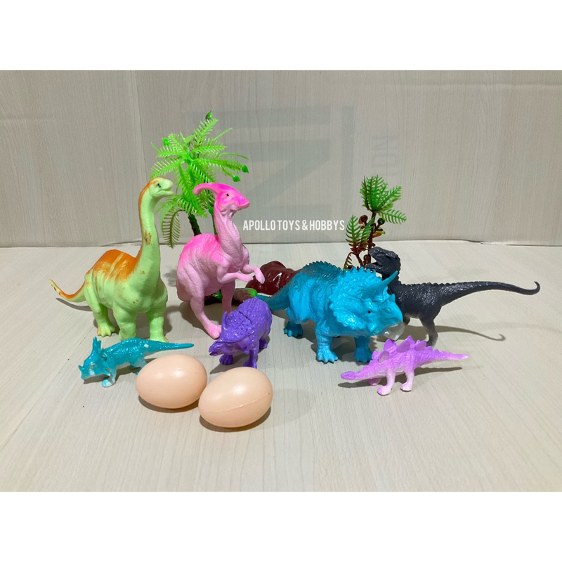 mainan anak dunia dinosaurus karet + aksesoris detail yg didapat seperti difoto bahan karet halus isinya banyak, harga terjangkau sudah ber SNI aman dimainkan anak2 jgn lupa follow toko untuk dapat voucher belanja ataupun update mainan terbaru dr toko kami