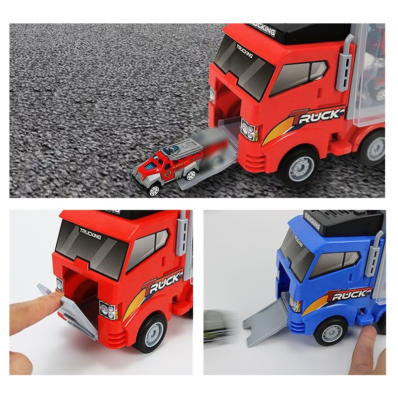 Safe material: Heavy trucks are made of durable ABS plastic, and mini race cars are made of alloy. Deformable truck head: The cool design will make children happy. No battery is needed, just push and move. Portable design: There is a handle on the top of the truck, which allows children to easily carry the vehicles stored in the truck. The truck trailer can store 6 cars. Children can have a lot of fun when they play alone.