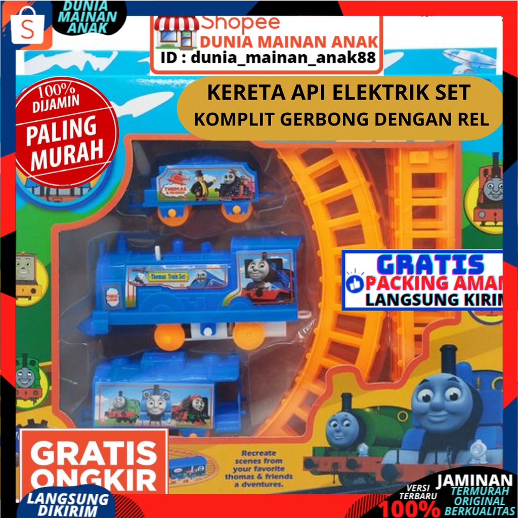 MAINAN ANAK REL KERETA API ELEKTRIK THM FOTO PRODUK REAL / ASLI 100% (BATERAI DIJUAL TERPISAH TYPE AA 1PCS) 1 set terdiri dari : - 4 buah rel kereta lurus -4 buah rel kereta belokan - 3 buah gerbong
