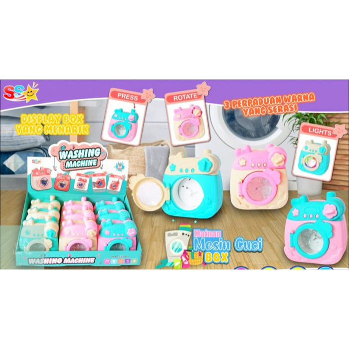 mainan mesin cuci ada lampu, menggunakan baterai bisa berputar. sangat bagus dan lucu untuk pretend play anak perempuan.