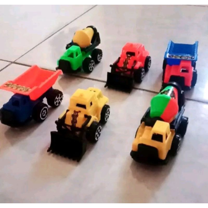 mainan mobil anak jenis kontruksi atau alat berat untuk umur 3+ thn 1pak isi 6psc ukuran mobil 7cm bahan plastik warna terang tidak mudah copot dan patah