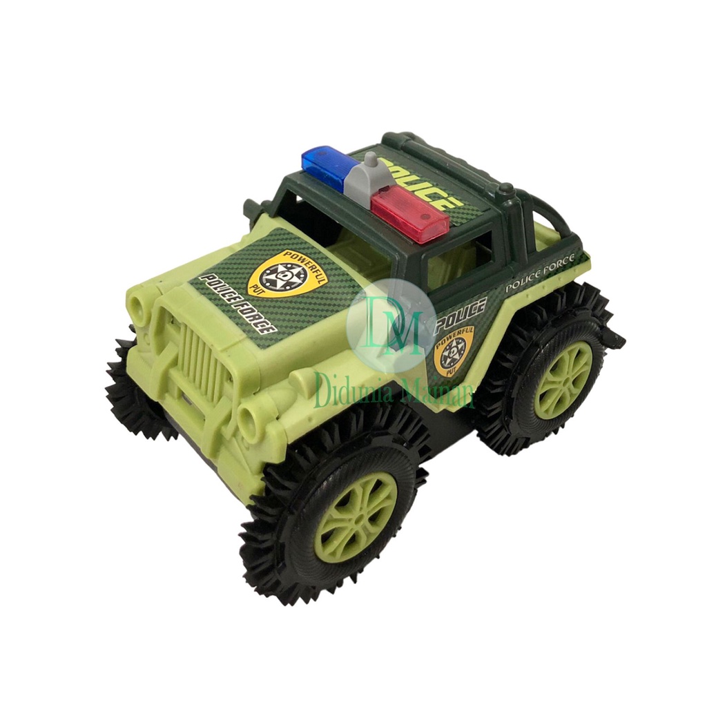 Police tiping car merupakan mainan mobil mobilan polisi berbentuk jeep dengan kecepatan yang kencang, Mobil ini dapat jungkir balik dan berbalik arah jika menabrak halangan, sangat tahan terhadap banting dan tabrakan. Selain itu mobil jeep polisi ini bisa melakukan putaran juga loh. Mainan mobil polisi ini wajib dimiliki bagi anak-anak terutama anak cowok. Anak Anda pasti akan senang saat diberi mainan mobil ini. Mainan ini dapat melatih kreativitas, kecerdasan, dan motorik anak.