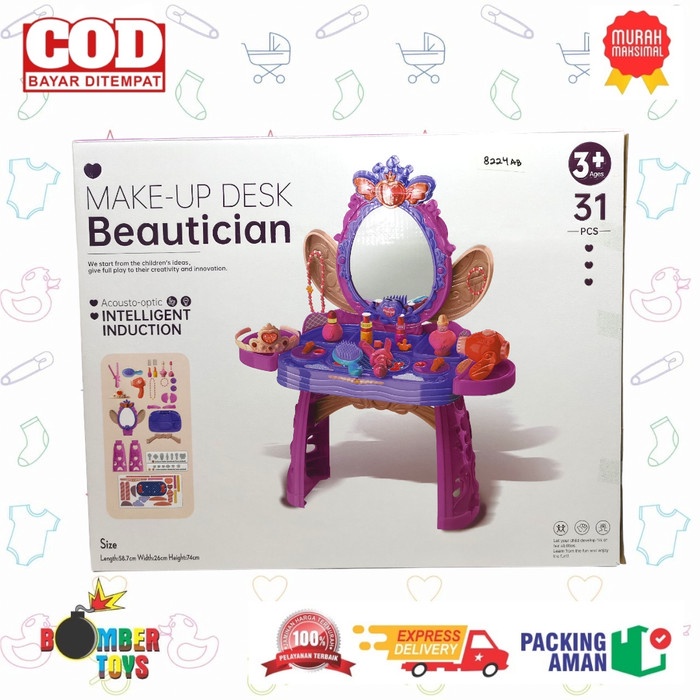 Spesifikasi : - Meja Rias - 31pcs acsseories di dalam nya - Dilengkapi dengan hair dryer - Colorfull - Music -Lights