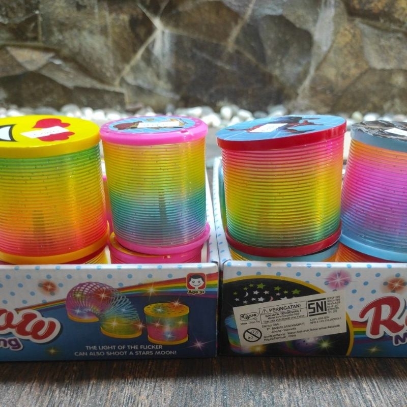 Mainan SPRING yang lagi viral,, mengadopsi mainan jaman dulu dengan pilihan warna spring,, warna-warna yang dihasilkan oleh daya pegas per ini. Mainan spring mudah dibawa ke mana saja.